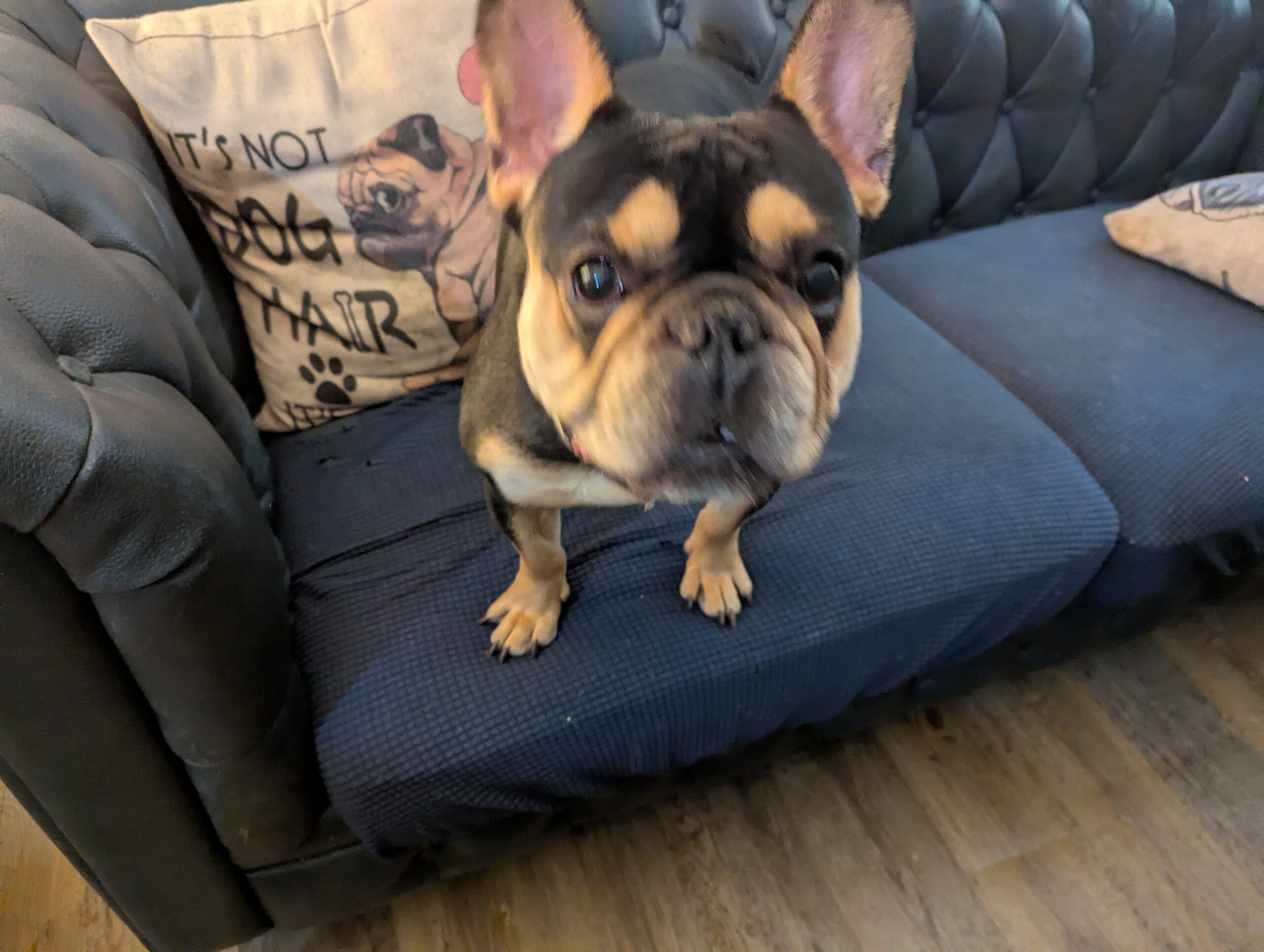Pablo is an active, friendly black and tan male french bulldog. He loves to play with his toys, and is always up for a walk. He is 3 years old.